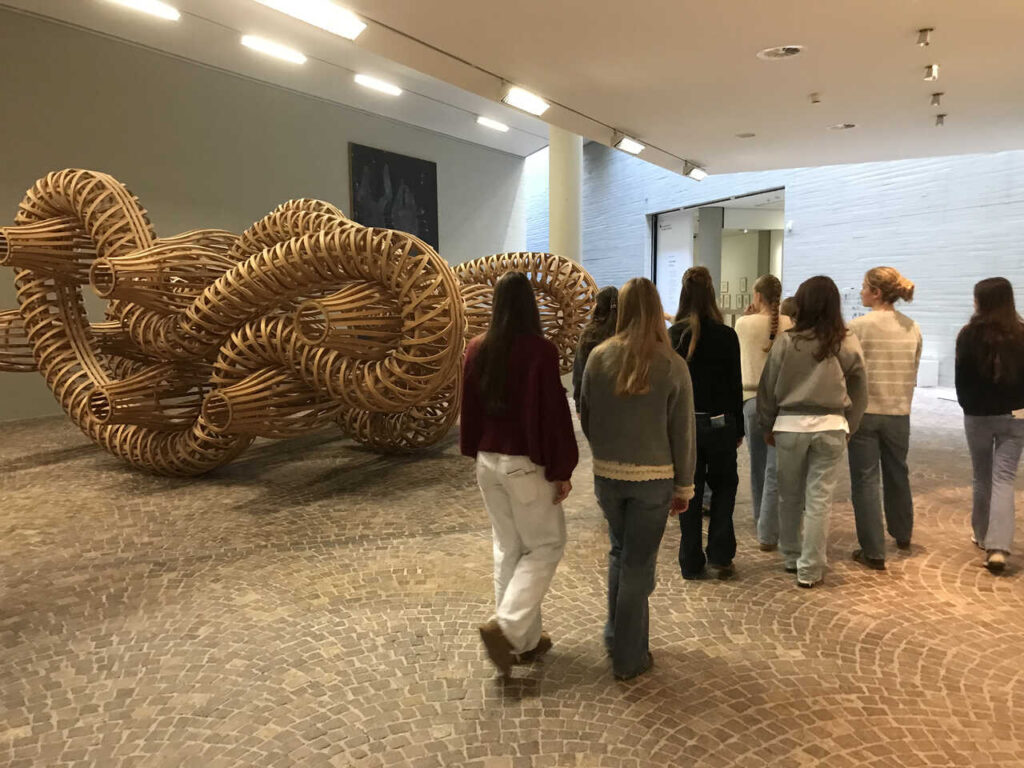 Im Dezember besuchten alle vier Kunstleistungskurse das Sprengel Museum Hannover. Dort galt es, in kreativen Workshops vor allem das Werk des britischen Künstlers Richard Deacon in Augenschein zu nehmen, welches unter anderem auch auf der aktuellen Liste des Kultusministeriums mit den abiturrelevanten Kunstwerken steht. Deacons raumfüllende Plastik What Could Make Me Feel This Way konnte im Museum aus allen Richtungen betrachtet und in selbst gewählten Ausschnitten abgezeichnet werden. Dabei wurde das zentrale Konzept des „Dazwischens“ – des Wechselspiels zwischen Innen und Außen – praktisch erfahrbar. Das Kunstwerk schwebt zwischen Organischem und Artifiziellem und löste vielfältige Assoziationen aus.