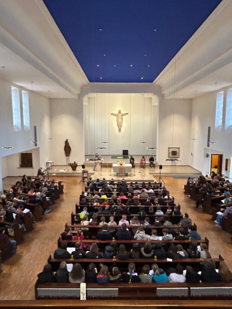 Am 18. Dezember fand in der Christus-König-Kirche der diesjährige Weihnachtsgottesdienst statt, inspiriert von Phil Collins Song „You’ll be in my heart“. Der Gottesdienst wurde von Schüler:innen der Klassen 6a, 7a, 8a und der Religionskurse Jg. 12 und 13 unter Leitung von Frau Kassenbrock, Frau Riehemann und Herrn Butke vorbereitet und durchgeführt.