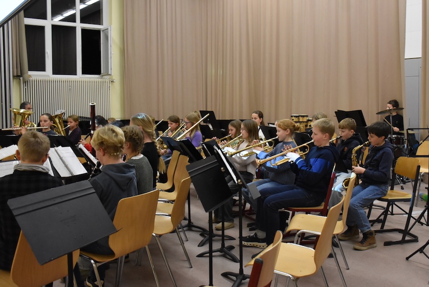 Kurz vor Weihnachten luden die Bläserklassen, die Bigband und das Blasorchester zu einem stimmungsvollen Adventskonzert in die Aula der Angelaschule ein. Die jüngsten Schüler:innen aus der Bläserklasse 5 präsentierten sich nach nur vier Monaten Unterricht mit den ersten einstudierten Stücken vor einem großen Publikum. Auch die Bläserklassen 6 und 7 boten ein abwechslungsreiches Programm mit bekannten Weihnachtsliedern und Arrangements aus dem Bereich klassischer Orchesterliteratur und Pop-Musik.