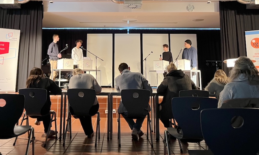 „Jugend debattiert“ ist ein deutschlandweiter Debattierwettbewerb, bei dem sich die jeweiligen Sieger:innen der Schulentscheide auf regionaler Ebene messen. Die beiden bestplatzierten Teilnehmenden qualifizieren sich für das Landesfinale in Hannover, an das sich das Bundesfinale in Berlin anschließt.