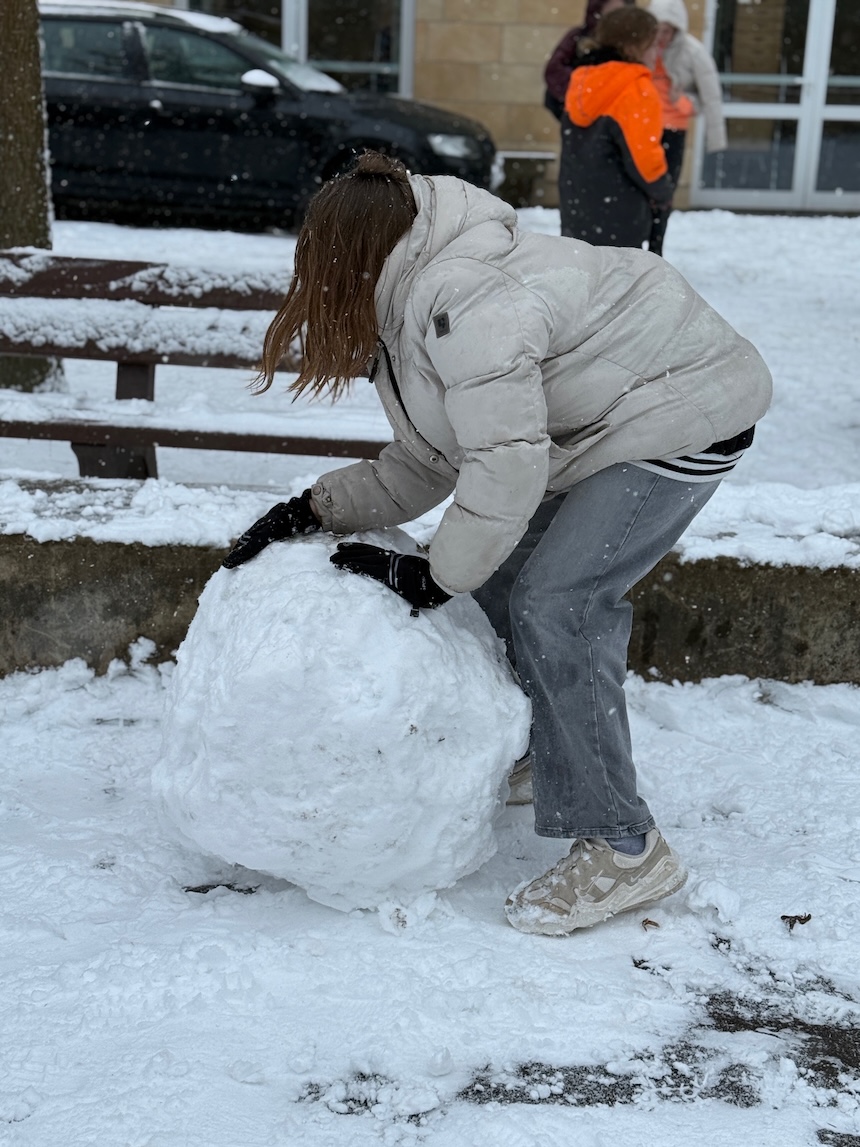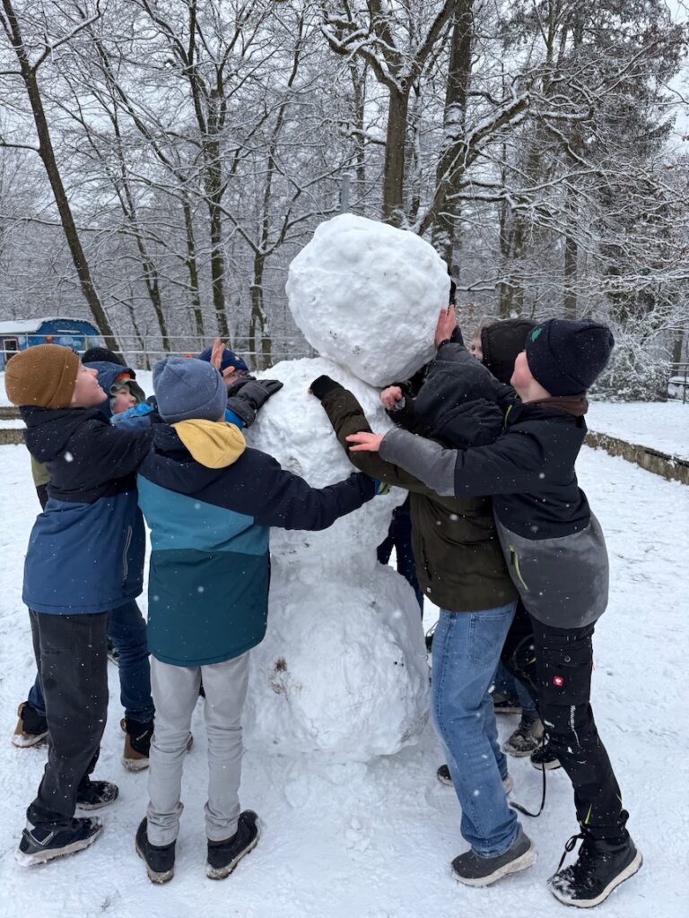 Unerwartete und lange Winterfreuden sorgten dafür, dass es die meisten Schüler:innen in den Pausen nicht in den Klassenräumen oder Pausenhallen hielt. Stattdessen wurde der Schulhof ebenso wie der Angelapark zum Treffpunkt für kleine und große Baumeister:innen. Mit viel Kreativität und Gemeinschaftssinn entstanden dort Schneemänner in unterschiedlichsten Größen – Freude pur!
