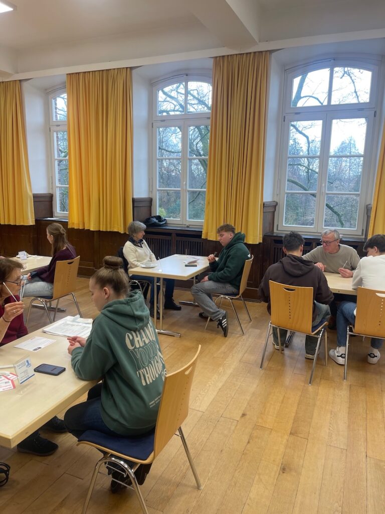 Am 23.02.2026 war die DKMS (Deutsche Knochenmarkspenderdatei) zu Gast an der Angelaschule. Schüler:innen ab 17 Jahren hatten die Möglichkeit, sich freiwillig typisieren zu lassen und sich damit als potenzielle Stammzellspender:innen registrieren zu lassen. Die Typisierung ist unkompliziert und schnell erledigt: Drei Wattestäbchen in den Mund und schon besteht die Chance, einem schwer erkrankten Menschen das Leben zu retten.