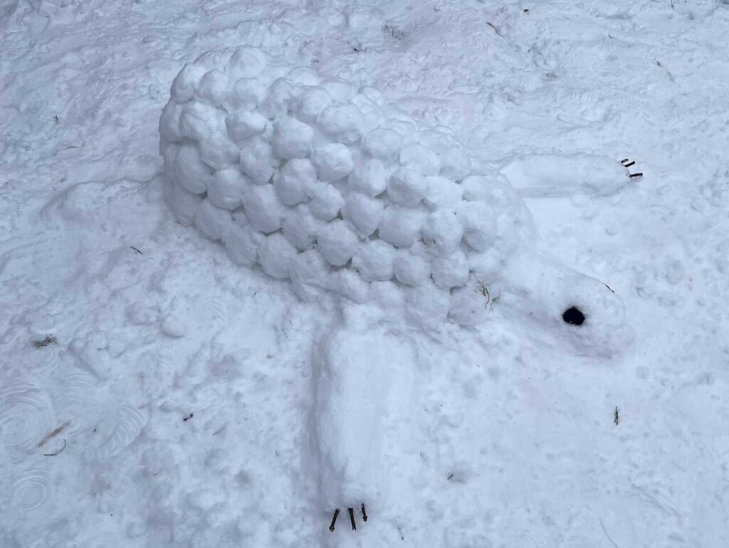Als die Schule schließlich ausfiel, wurden einige Schüler:innen besonders kreativ. Sowohl im Jahrgang 6 als auch im Jahrgang 12 wurde das reichlich vorhandene eiskalte „Bau- und Kunstmaterial“ im Rahmen des Homeschoolings fantasievoll in neue Formen gebracht.