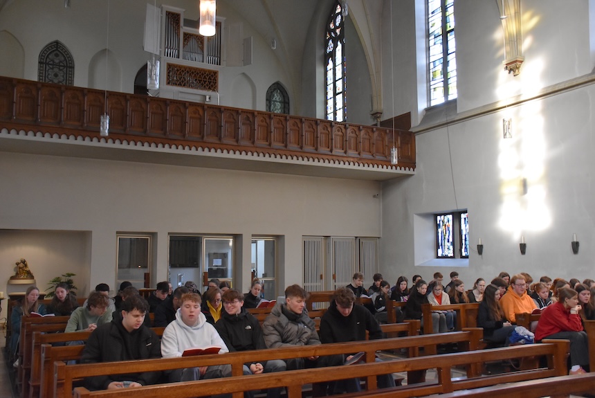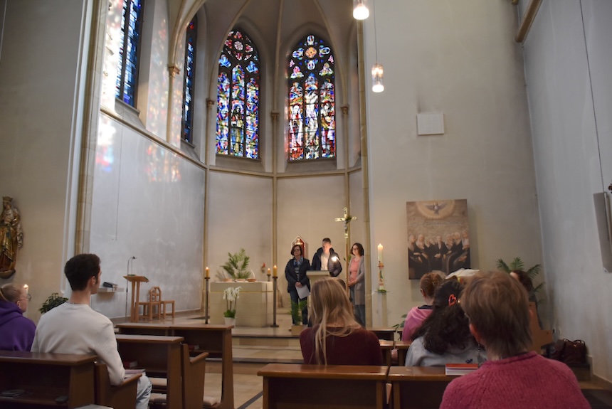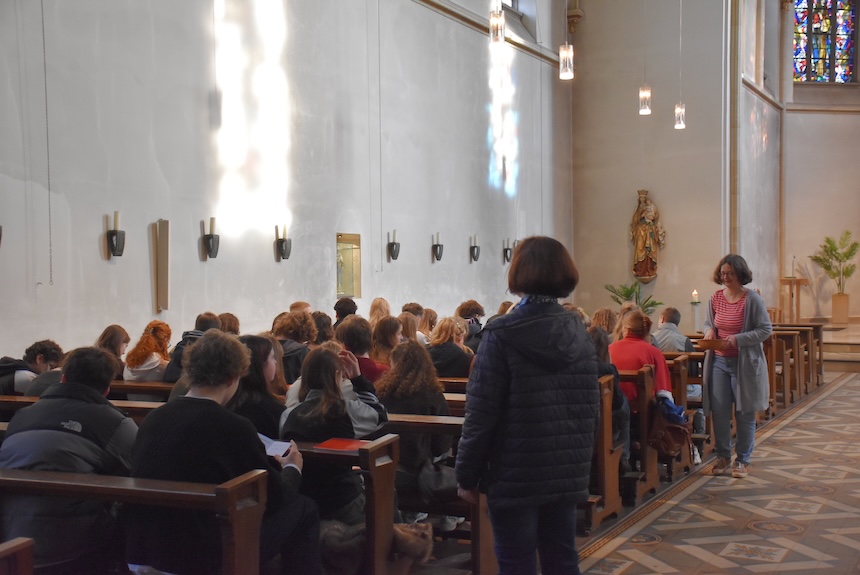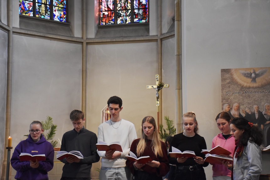 Auch in diesem Jahr feierten die Abiturientinnen und Abiturienten vor Beginn der Prüfungen einen Segnungsgottesdienst in der Klosterkirche. Mit dem Lied von Mark Forster „Wir sind groß“ und der Zusage Jesu aus dem Johannesevangelium „Euer Herz lasse sich nicht beunruhigen“ geht es nun in die Prüfungszeit. Durch diese möge der Segen Gottes die 115 Schüler:innen des Jahrgangs 13 genauso hindurchtragen wie die gute Gemeinschaft ihres Jahrgangs. Als die Abiturient:innen einander zum Segen die Hände auf die Schultern legten, wurde spürbar: Hier geht niemand allein.