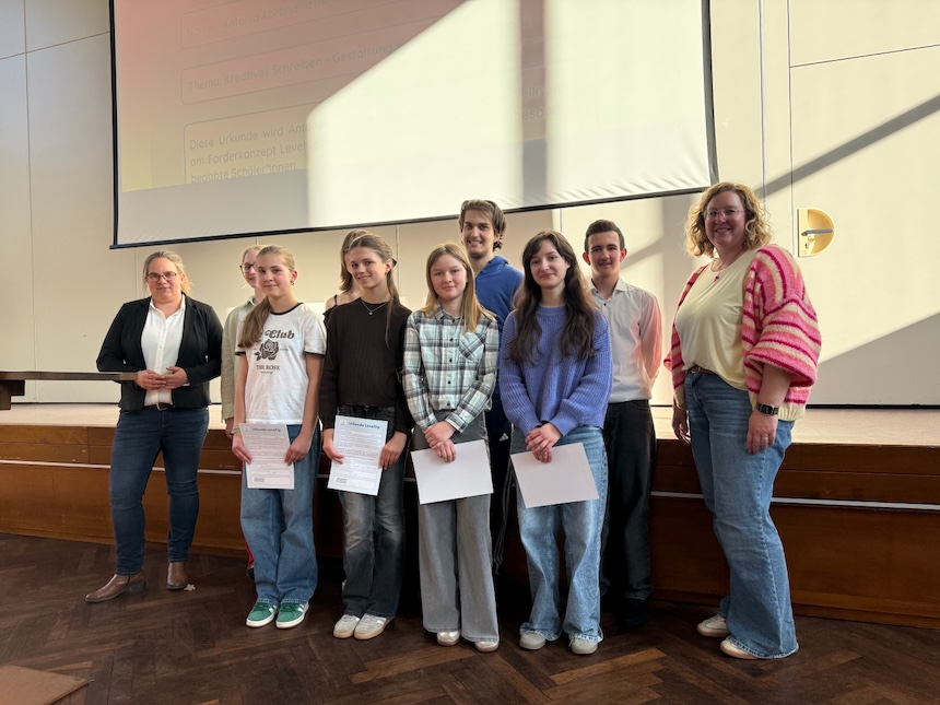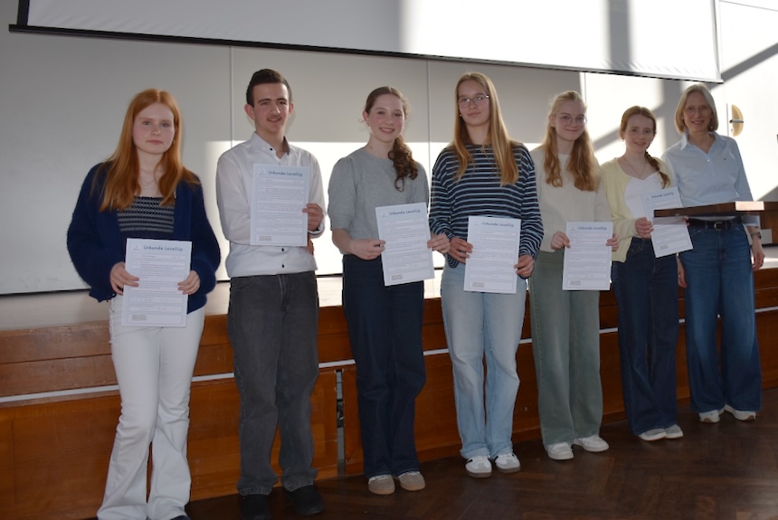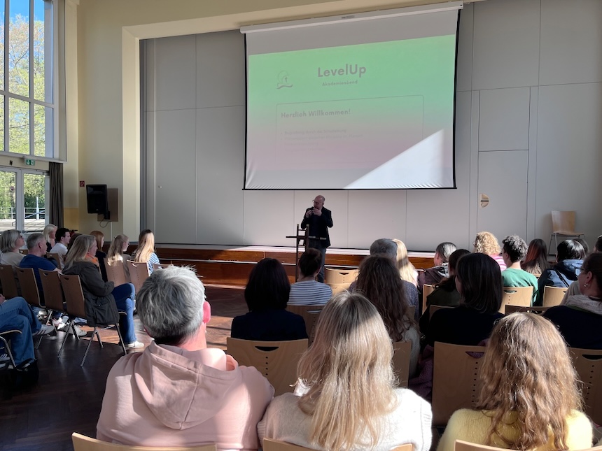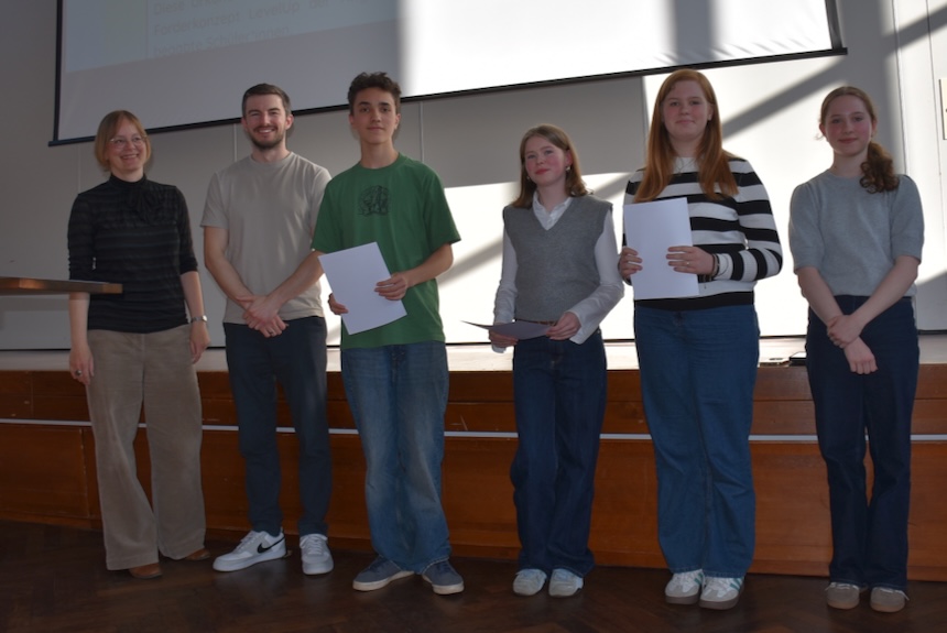 „Menschen wachsen an dem, was wir ihnen zutrauen“ – dieses Zitat des amerikanischen Footballtrainers Vince Lombardi drückt aus, was eine große Zahl von Eltern, Schüler:innen und Lehrer:innen am Akadamieabend des LevelUp-Projektes empfand: Stolz und Staunen über die Qualität und Vielfalt dessen, was die Jugendlichen im Rahmen des Forderprogramms auf die Beine gestellt haben. Die Liste reichte dabei von Buchvorstellungen und selbst geschriebenen Romanen und Gedichten in deutscher, englischer und spanischer Sprache über ein eBook mit mathematischen Knobelaufgaben und ein Computerprogramm zur Verschlüsselung von Nachrichten bis hin zu Filmen, Podcasts und musikalischen Darbietungen.