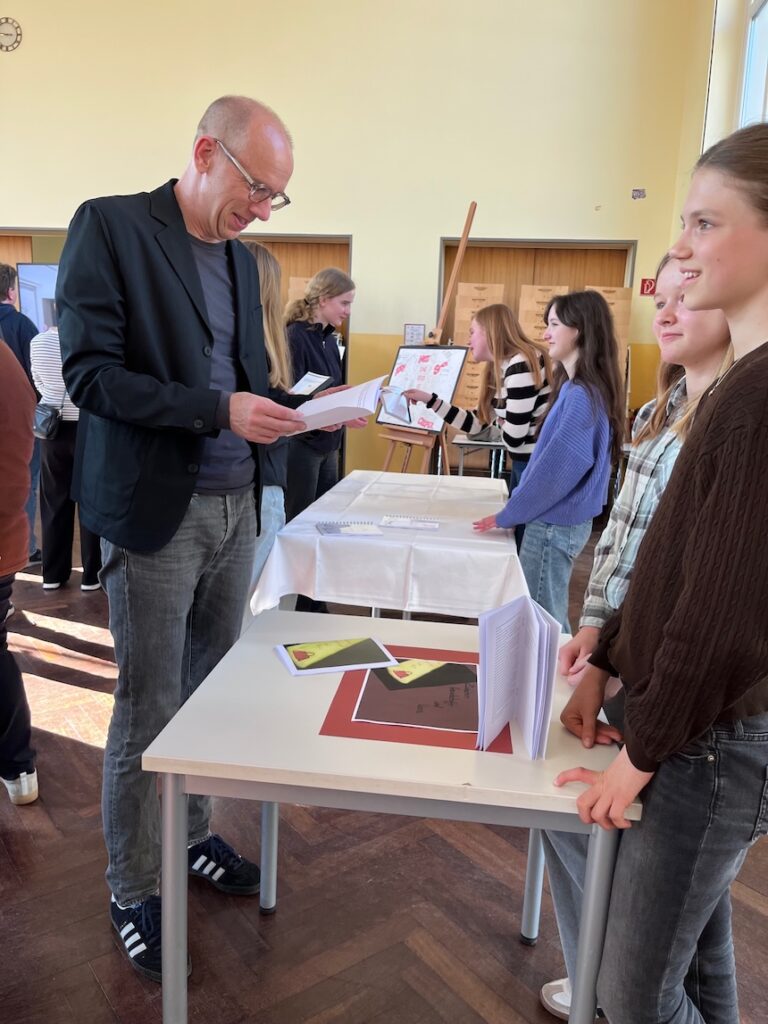 Begeistert über die Ergebnisse, die am Akademieabend präsentiert wurden, zeigten sich die Eltern: „Ich finde es super, dass die Schule das ermöglicht. Das ist genau das, was mein Sohn braucht.“ Die Schüler:innen hoben insbesondere die Eigenständigkeit des Arbeitens hervor: „Es hat mir sehr viel Spaß gemacht, wenn ich in der Zeit zum Arbeiten, mein eigenes Buch schreiben konnte! Immer wieder fielen mir neue Ideen ein, die ich unbegrenzt aufschreiben konnte, und das war eine schöne Abwechslung zum Unterricht. Das Projekt an sich fordert genau richtig und man musste seine Arbeitszeiten am besten immer gut organisieren und darauf achten, dass es nie zu viel wird.“ Eine weitere Teilnehmerin fasst ihre Erfahrungen wie folgt zusammen: „Während des Level-Up-Projekts konnte ich selbstständig und in meinem eigenen Tempo an meinem Projekt arbeiten. Die Atmosphäre in der Lernlandschaft hat mir dabei sehr geholfen, mich zu konzentrieren und in Ruhe zu arbeiten. Die Lehrkräfte waren freundlich und unterstützend, was die Arbeit zusätzlich erleichtert hat. Dadurch konnte ich mein Projekt Schritt für Schritt weiterentwickeln. Insgesamt war das es für mich eine sehr positive Erfahrung.“