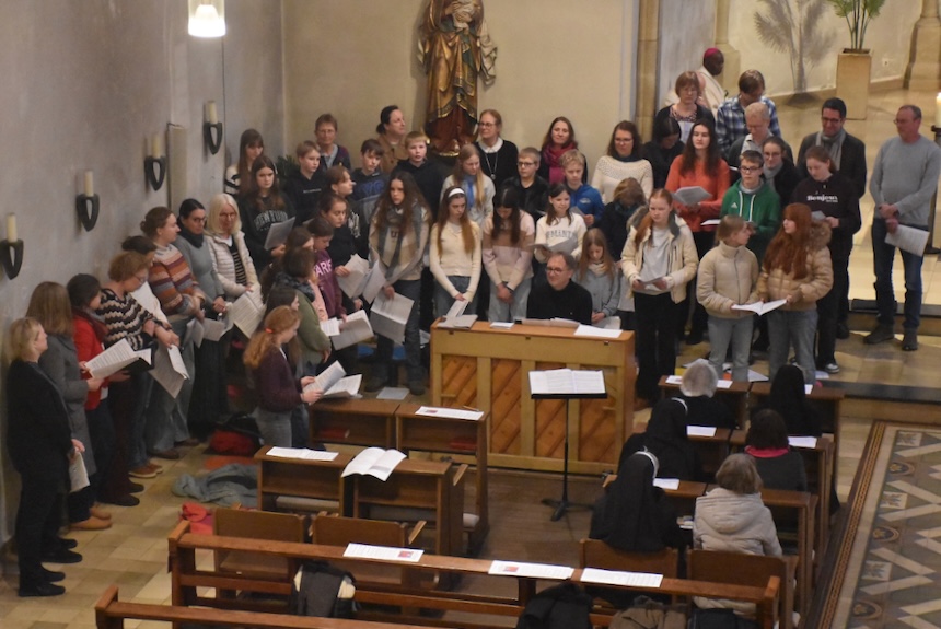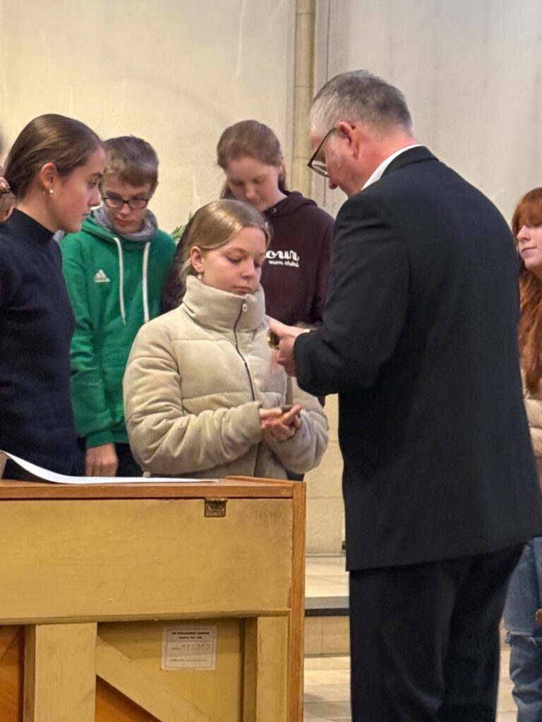 Musikalisch wurde der Gottesdienst vom Projektchor der Angelaschule gestaltet. Schüler:innen, Eltern und Kolleg:innen verliehen der Feier gemeinsam mit großer musikalischer Vielfalt und spürbarer Verbundenheit einen festlichen Rahmen. Die Leitung lag bei Frau Sommer und Herrn Bodde. Ein herzlicher Dank gilt allen Kolleg:innen und Schüler:innen, die auf ganz unterschiedliche Weise zum Gelingen dieses besonderen Gottesdienstes beigetragen haben.