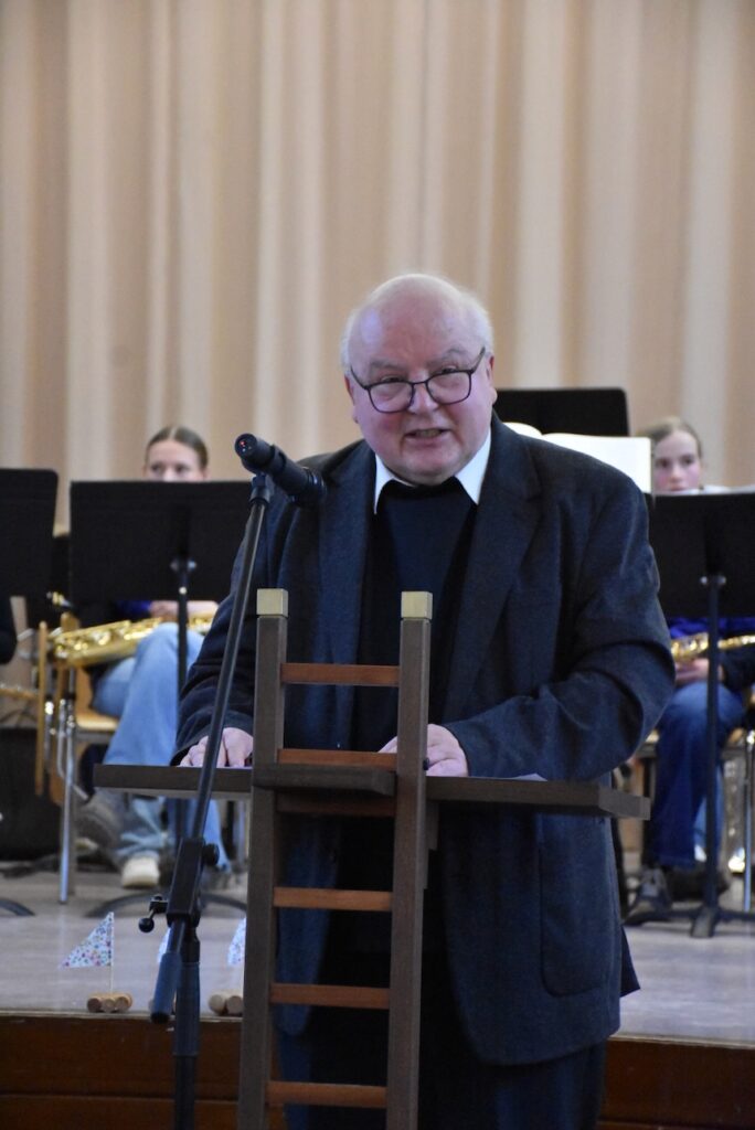 Nach der Messe folgte ein Empfang in der Aula der Angelaschule, wo die Feierlichkeiten fortgesetzt wurden. Die Big Band der Angelaschule unter der Leitung von Ekkehard Sauer eröffnete den Festakt mit dem Stück „Just in Time“ von Jule Styne. Unser Schulleiter Dr. Tobias Stich begrüßte die Anwesenden und würdigte die langjährige, segensreiche Arbeit der Ursulinenschwestern.