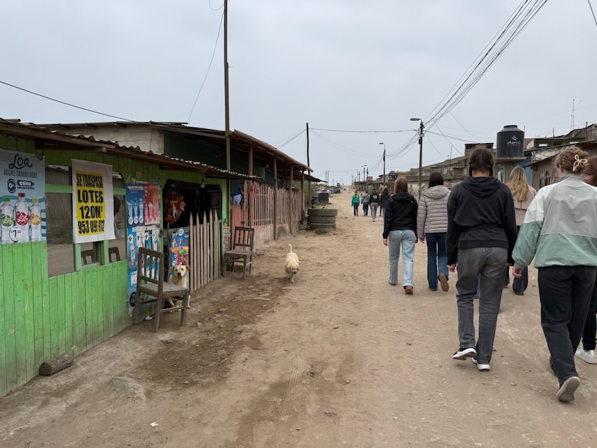 Noch eindringlicher wurde es, als wir Pachacutec, einen Distrikt außerhalb Limas, besuchten. Hier sahen wir Armut in einer Intensität, die uns sprachlos machte – aber auch Menschen, die trotz widriger Umstände mit Würde, Zusammenhalt und Hoffnung leben. Gemeinsam mit der Gruppe des Schülerinnenaustauschs der Ursuline Academy aus Dallas halfen wir dort, Lebensmittelpakete zu packen und an bedürftige Familien zu verteilen. In Gesprächen mit Anwohner:innen konnten wir direkt erleben, was diese Unterstützung, die z.T. auch durch unsere Spendengelder finanziert wird, bedeutet. Für manche Familien konnten mit Spenden sogar Wassertanks oder dringend benötigte Grundversorgung finanziert werden.