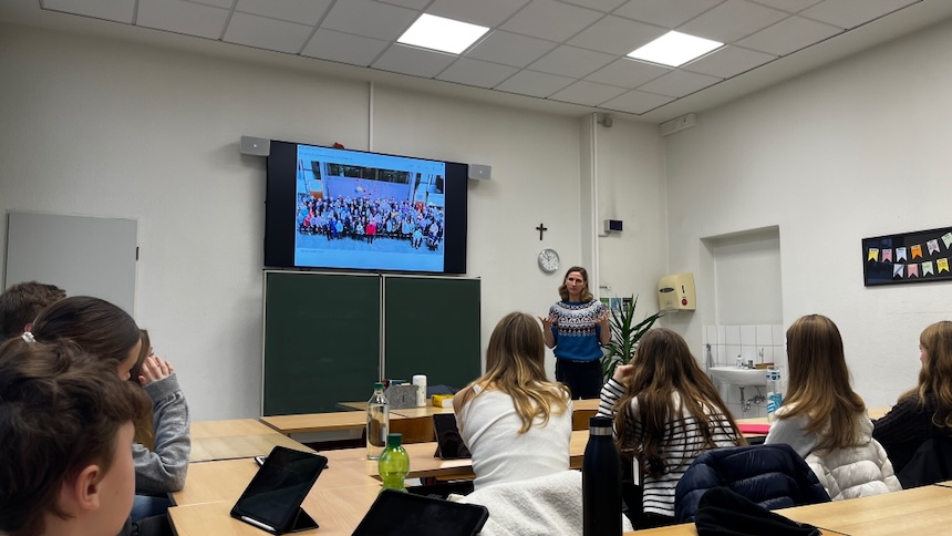 Der Politik-Wirtschaft-Leistungskurs des 12. Jahrgangs hatte vor kurzem die Gelegenheit, Frau Prof. Dr. Melanie Speck von der Hochschule Osnabrück und dem Wuppertal Institut für Klima, Umwelt, Energie begrüßen zu dürfen. Im Mittelpunkt des Besuchs stand der Bürgerrat „Ernährung im Wandel“, an dem Frau Prof. Dr. Speck wissenschaftlich beteiligt ist. Der Besuch knüpfte unmittelbar an den Unterricht an: Der Politik-Wirtschaft-LK hatte sich zuvor intensiv mit dem Thema politische Partizipation sowie mit Bürgerräten als Instrument demokratischer Beteiligung auseinandergesetzt. Vor diesem Hintergrund konnten die Schüler:innen ihr bereits erworbenes theoretisches Wissen gezielt vertiefen und kritisch hinterfragen.