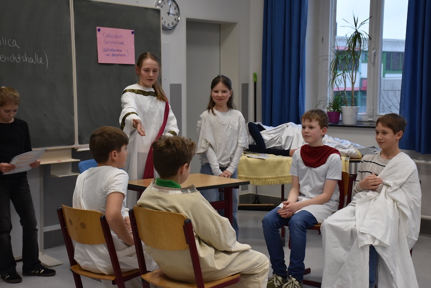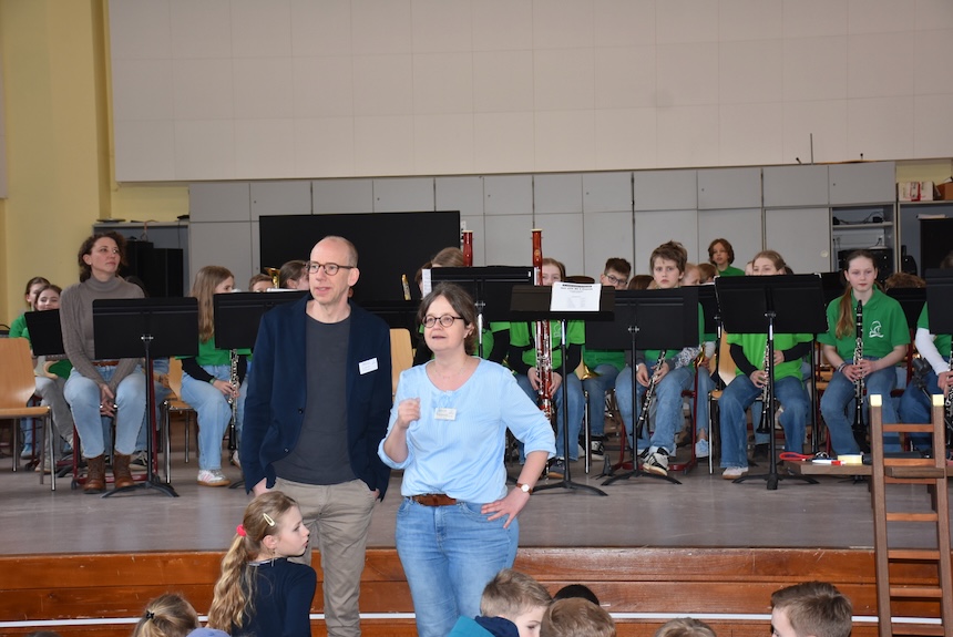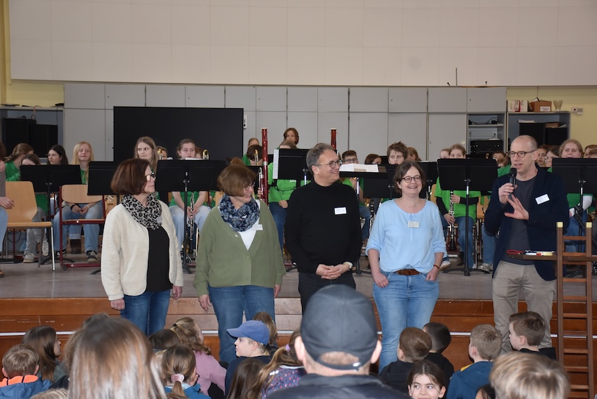 Für ein abwechslungsreiches Bühnenprogramm sorgten mehrere musikalische und künstlerische Beiträge. Die Bläserklassen begeisterten mit schwungvollen Auftritten, der Lateinkurs präsentierte ein unterhaltsames Theaterstück, und der Unterstufenchor lud mit fröhlichen Mitmachliedern zum Mitsingen ein.
