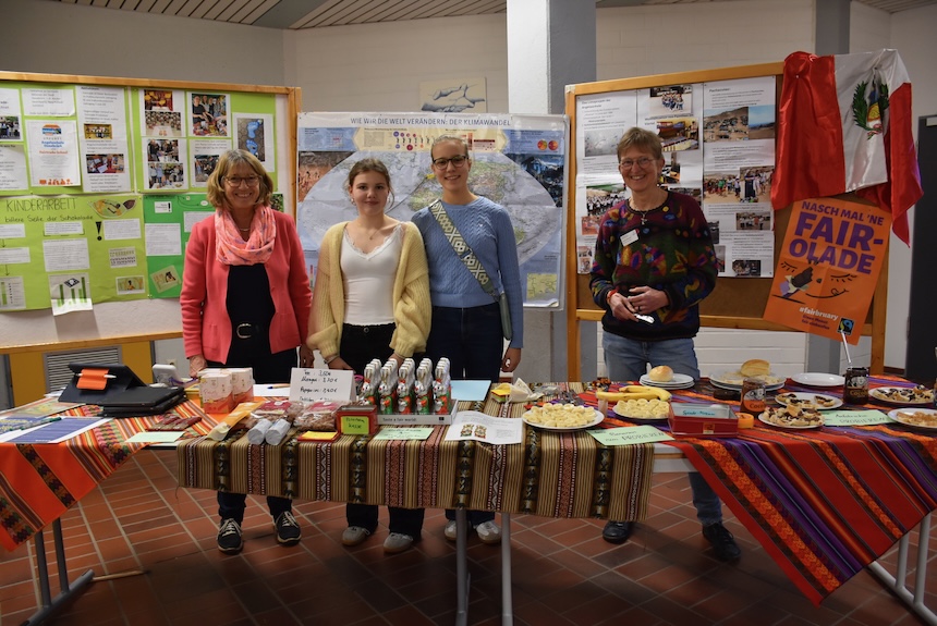 In der Pausenhalle präsentierten sich zahlreiche Gruppen und Initiativen der Schulgemeinschaft mit Informationsständen. Unter anderem konnten sich die Gäste über die Arbeit des Fördervereins, der Elternvertretung, der Schulsozialarbeit sowie des Beratungsteams informieren. Auch Projekte und Arbeitsgemeinschaften wie Bewegte Schule, die Unsere-Welt-AG oder die Fair-Trade-School stellten sich vor und luden zu Gesprächen ein.