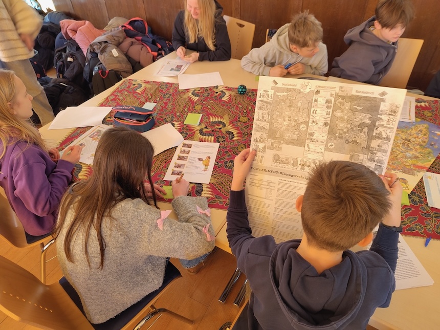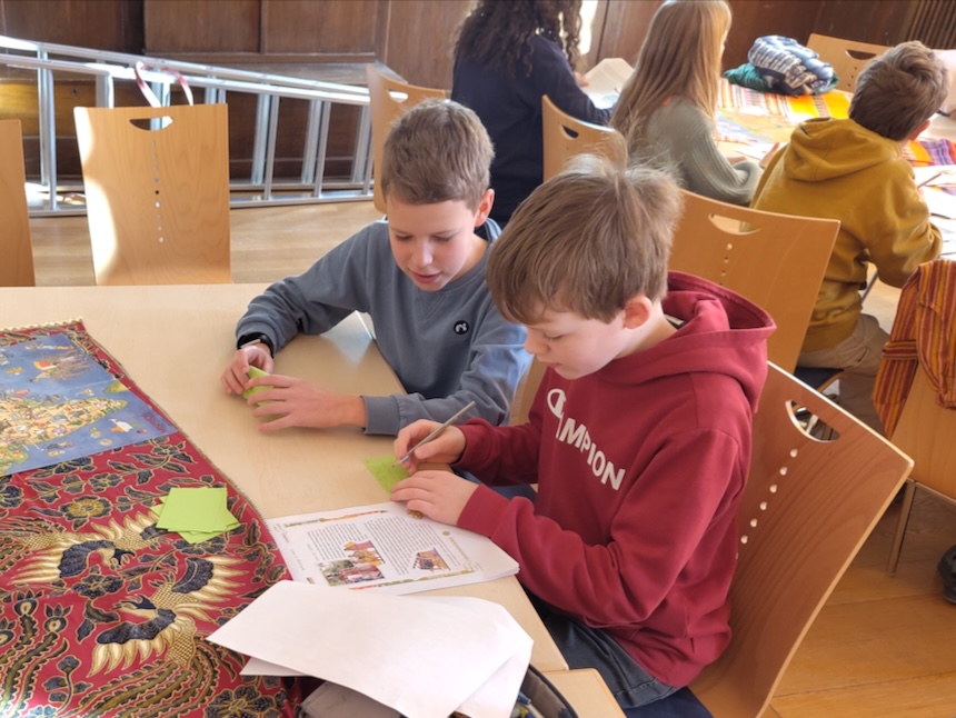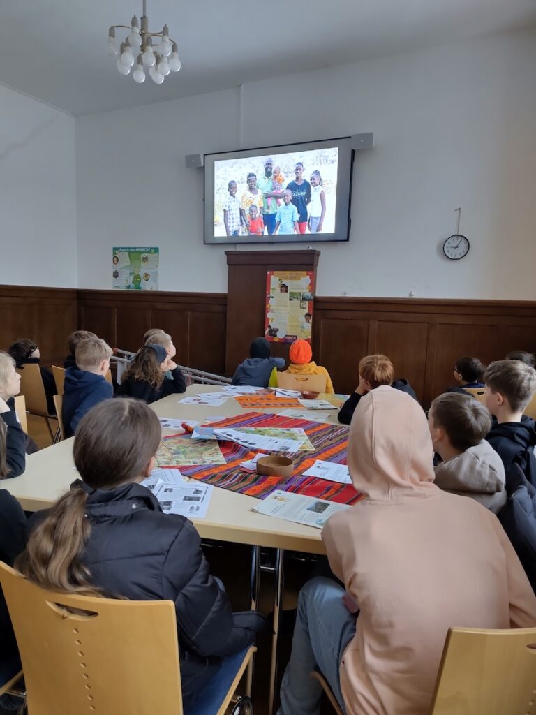 Melchior aus Kamerun erzählte Rucky Reiselustig (und damit auch den Schüler:innen der 6. Klassen), dass er zur Schule gehen kann und dann später seinen Wunschberuf – Arzt – erlernen kann. Als die Schüler:innen erfuhren, dass nicht alle Jugendlichen in Kamerun eine Ausbildung machen können – so wie es für uns hier selbstverständlich zu sein scheint – weil ihre Eltern kein Geld dafür haben, wollten sie den Menschen dort helfen. Sie haben geplant, Spenden zu sammeln für das Misereor-Projekt, das vielen Jugendlichen in Kamerun in ihrer Ausbildung hilft.