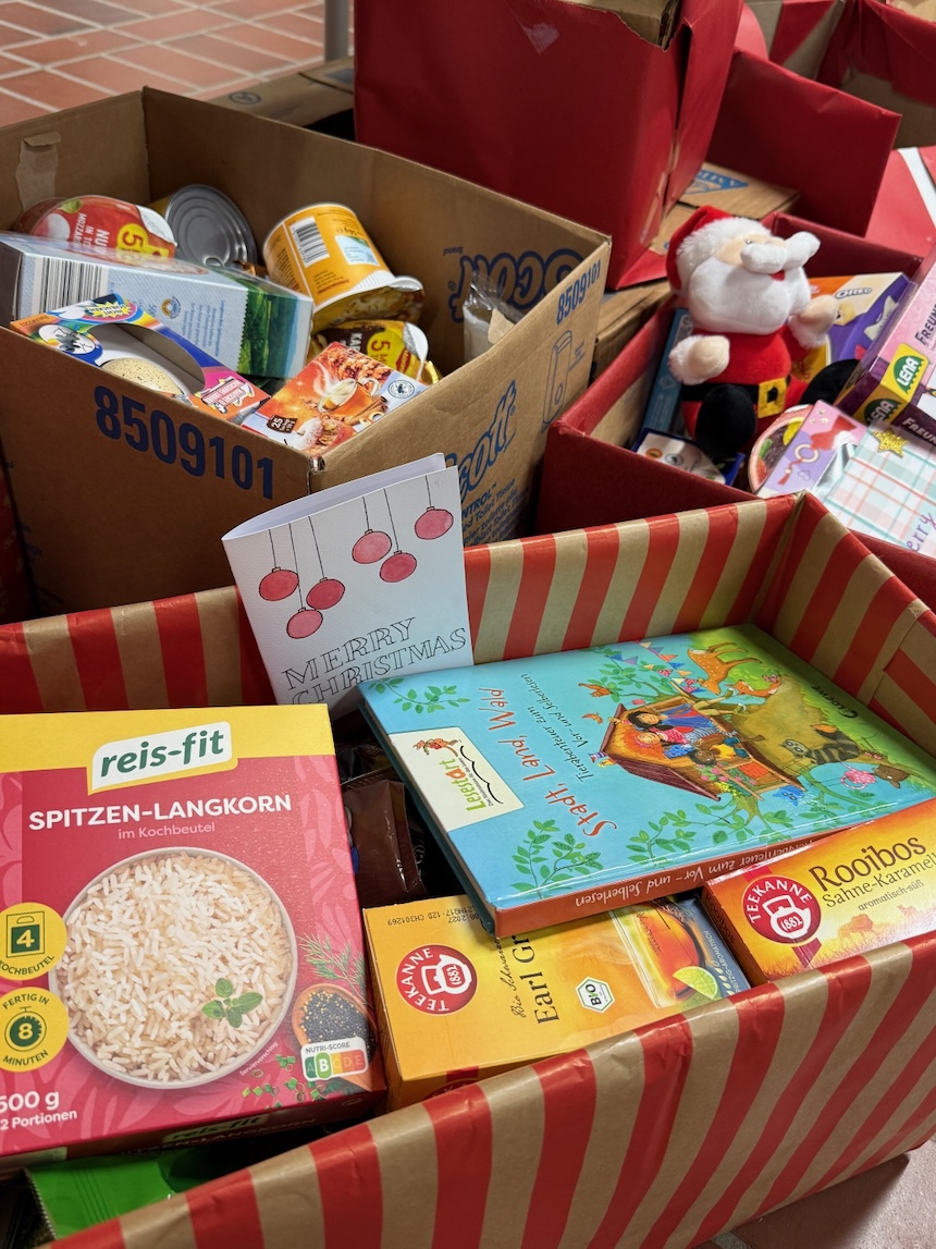 Unsere Schule hat auch dieses Jahr wieder eine tolle Nikolausaktion veranstaltet. Wir durften das erste Mal daran teilnehmen. Jede Klasse und jeder Kurs hat Lebensmittel und Spielzeug, wie z.B. Nudeln, Süßigkeiten, Seife, kleine Spiele, Malbücher und Stifte gesammelt und diese Spenden in einem großen Karton verpackt. Jeder hatte etwas von zu Hause mitgebracht, sodass am Ende jeder Karton vollgepackt war. Die Kartons wurden noch weihnachtlich mit Geschenkpapier, Schleifen und bunten Bändern verpackt. Einige Klassen legten auch selbst geschriebene Briefe in die Kartons. Wir hatten viel Spaß dabei. Als alles fertig war, wurden die Pakete zu verschiedenen Stationen gebracht. Dort werden sie dann weiter verteilt. Mit den Paketen helfen wir bedürftigen Familien, die nicht so viel haben. Wir finden es gut, dass wir anderen Menschen helfen können. Die Nikolausaktion war eine schöne Erfahrung und hat gezeigt, dass man gemeinsam viel Gutes tun kann. (Klasse 5c mit Herrn Düvel & Frau Knäuper)