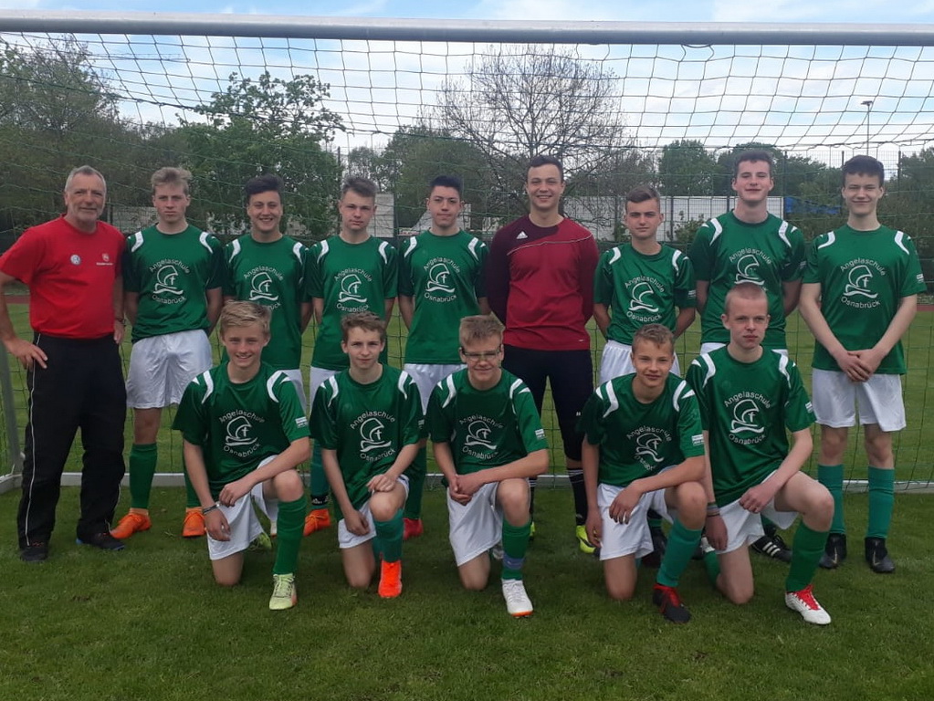 Im Spiel gegen das Gymnasium Bad Iburg egalisierte Lina Meyerrose kurz vor der Pause den Rückstand. Nach der Halbzeit erhöhten die Angela – Mädchen das Tempo und schossen einen 5:1 – Sieg heraus. Neben einem Tor von Carla Böhmer und einem Eigentor sorgte Lilly Bartke für zwei weitere Treffer, obwohl Lilly gehandicapt (Fußprellung) ins Turnier ging und nicht über die volle Spielzeit mitwirken konnte.